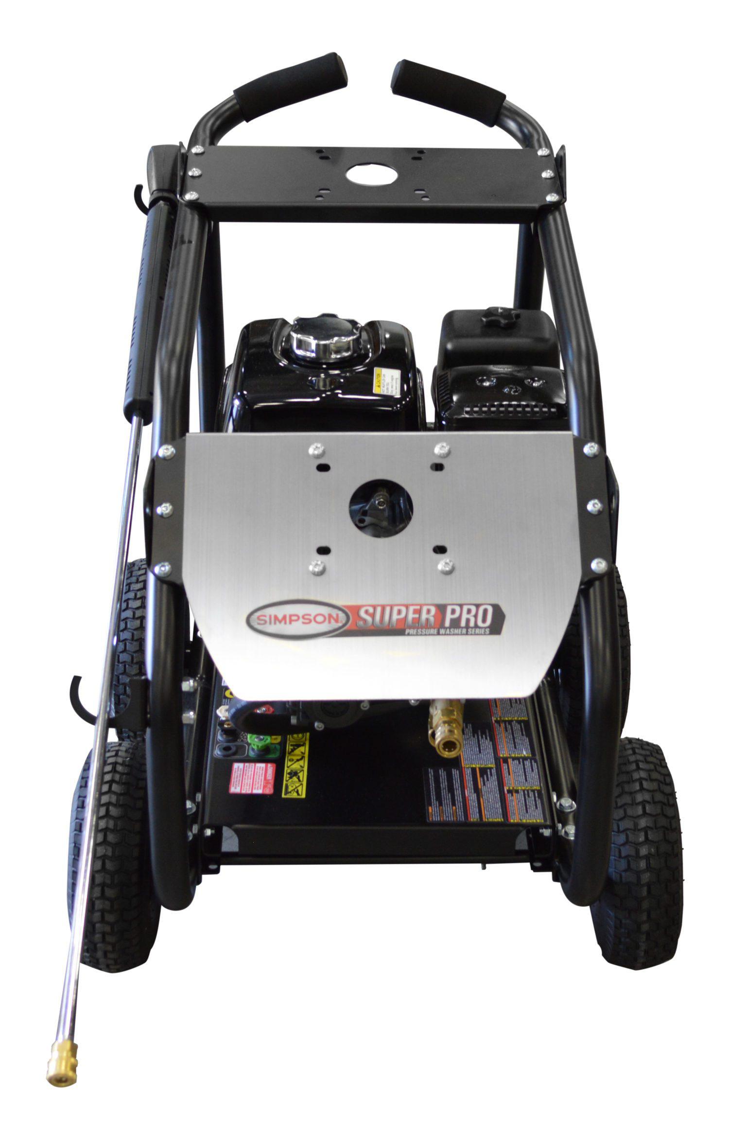 Built for the tough jobs, The SIMPSON® Super Pro Roll Cage will handle all your commercial needs. The options are endless with models sporting direct, belt or gear drives premium AAA or COMET pumps. The remote unloader with bypass hose provides industrial durability for extended pump life. Pull up to the work area, connect the spray gun, start the engine and begin cleaning.