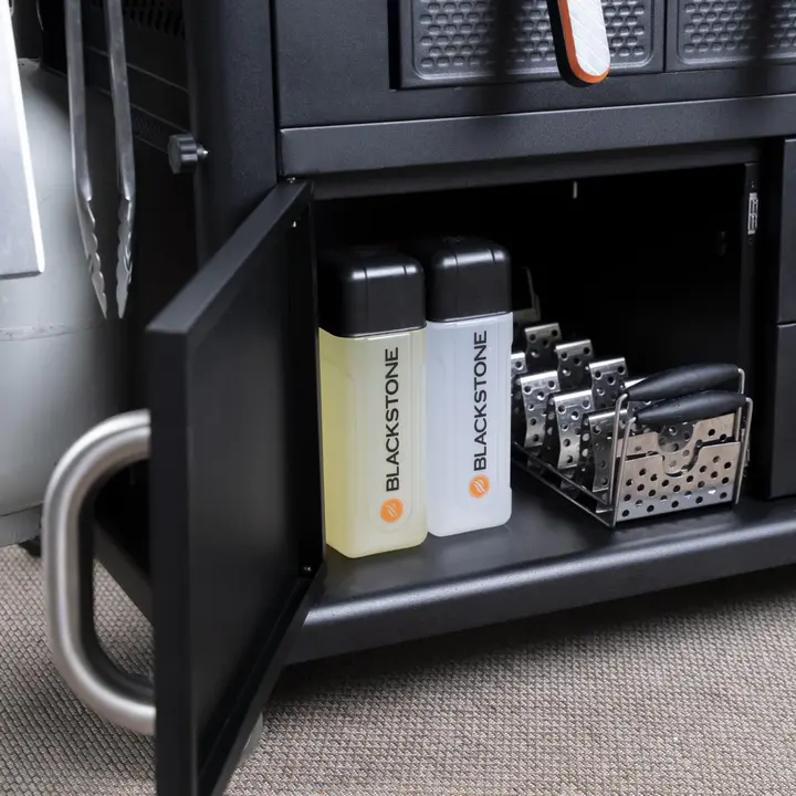 As the cornerstone of Blackstone Products, our 36-Inch Griddle Cooking Station offers an expansive 36' x 21', 756 sq. in. cooking surface; easy assembly with a quick and easy ignition button; two cantilevered work surfaces and a bottom shelf to make food preparation convenient; easy to remove griddle top, held stable by a stout steel frame and four industrial strength caster wheels, 2 of which lock; thick cold rolled steel griddle cooking surface; steel frame powder coated in protective black; and four independently controlled 15,000 BTU stainless-steel burners, for a total of 60,000 BTUs controlled low-to-high for versatile cooking options. We know you will love using our Blackstone 36' Griddle Cooking Station this summer as much as we will!