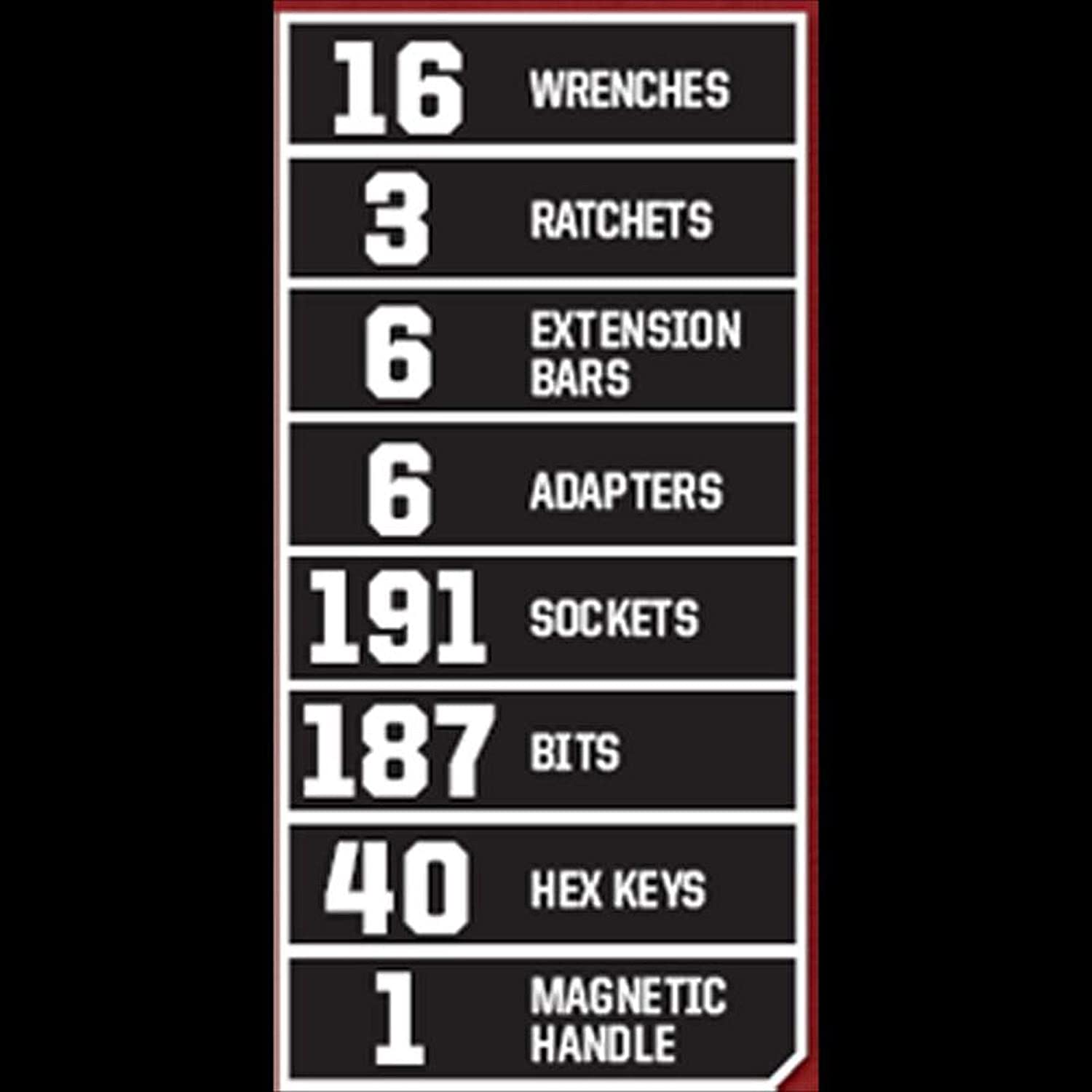 - 3PC 1/4"& 3/8"& 1/2" quick-release ratchet handle; 12PC Combination Wrench; 4PC Mini Combination Wrench;23PC 1/4" Dr. sockets in metric& SAE: 4��5��5.5��6��7��8��9��10��11��12��13��14mm; 5/32"��3/16"��7/32"��1/4"��9/32"��5/16"��11/32"��3/8"��7/16"��1/2"��9/16", 6pt; 10PC 1/4" Dr. SAE sockets: 3/16"��7/32"��1/4"��9/32"��5/16"��11/32"��3/8"��7/16"��1/2"��9/16",12pt