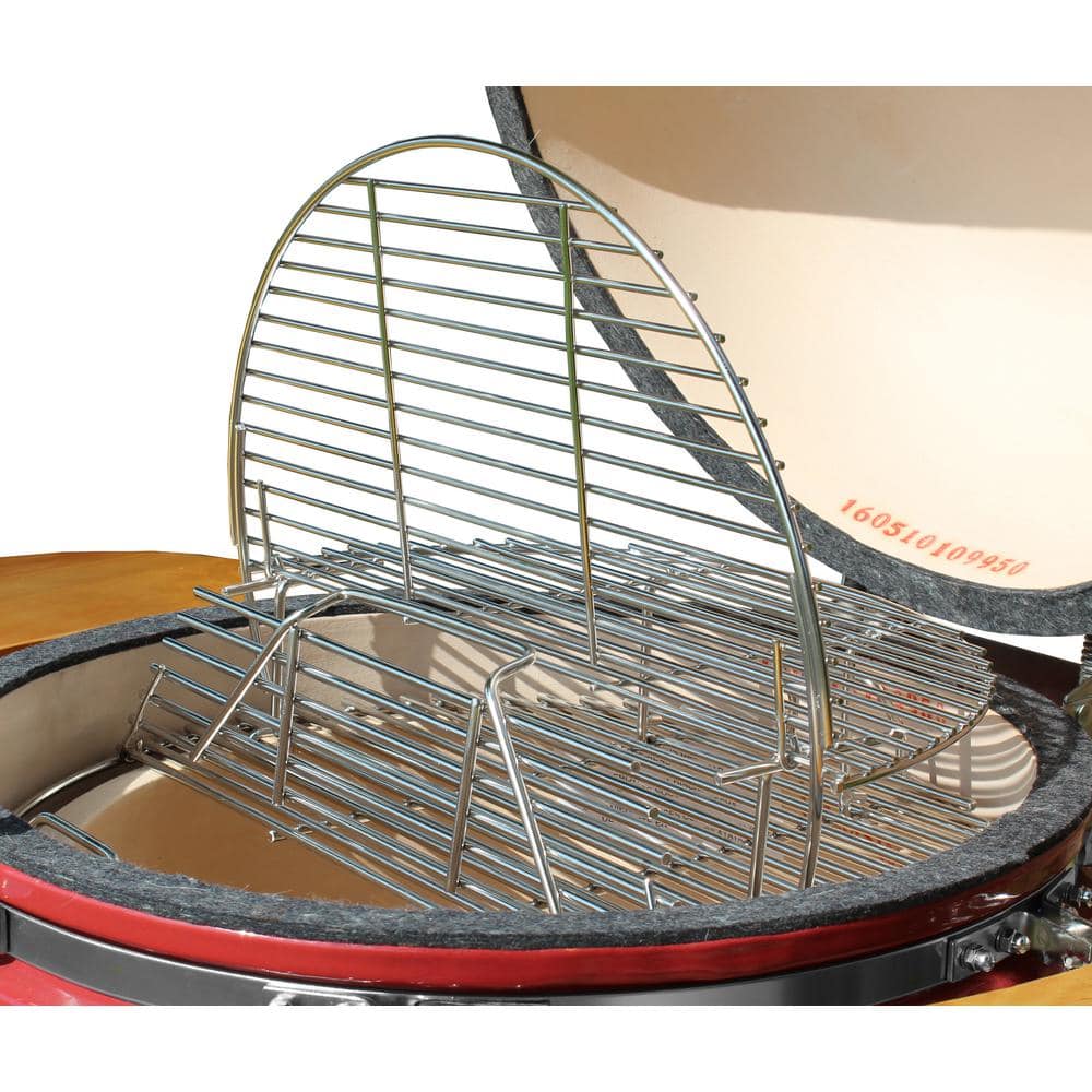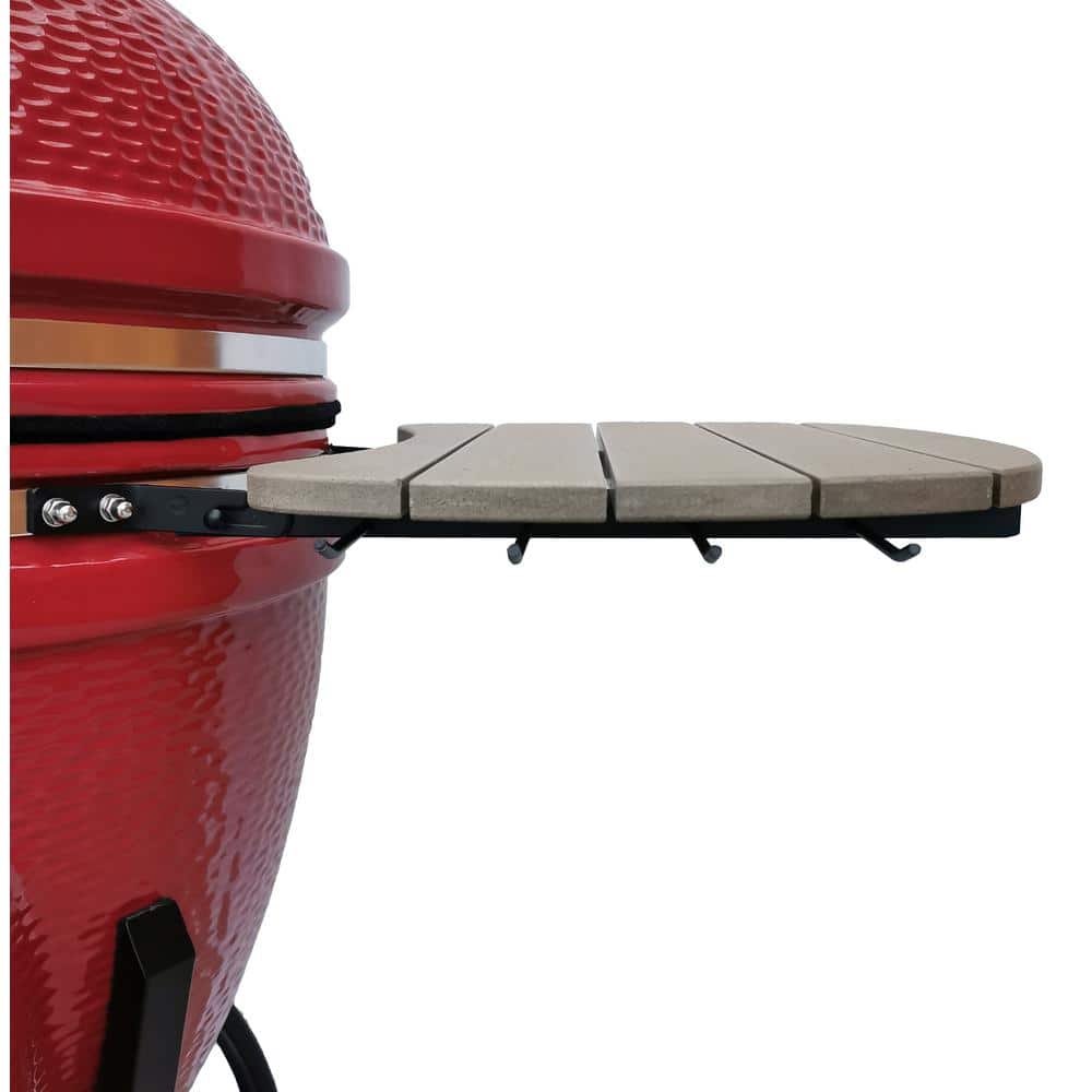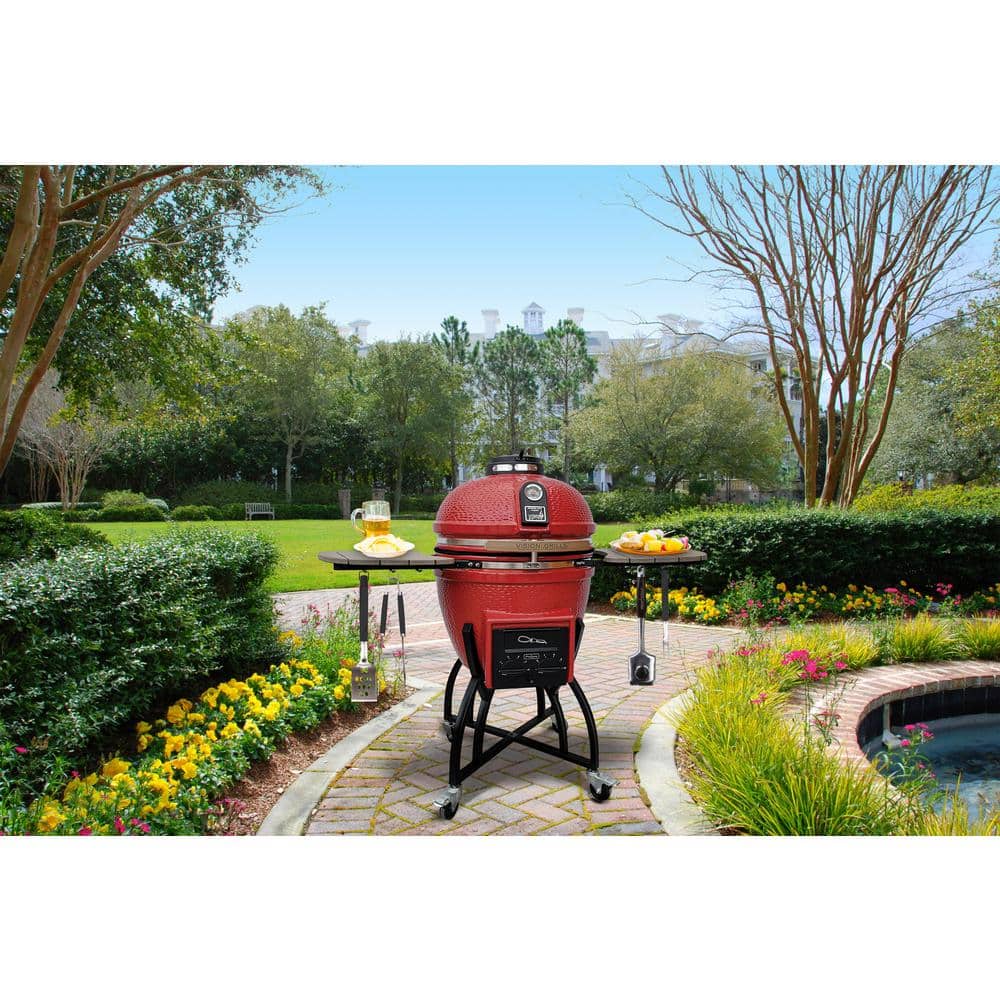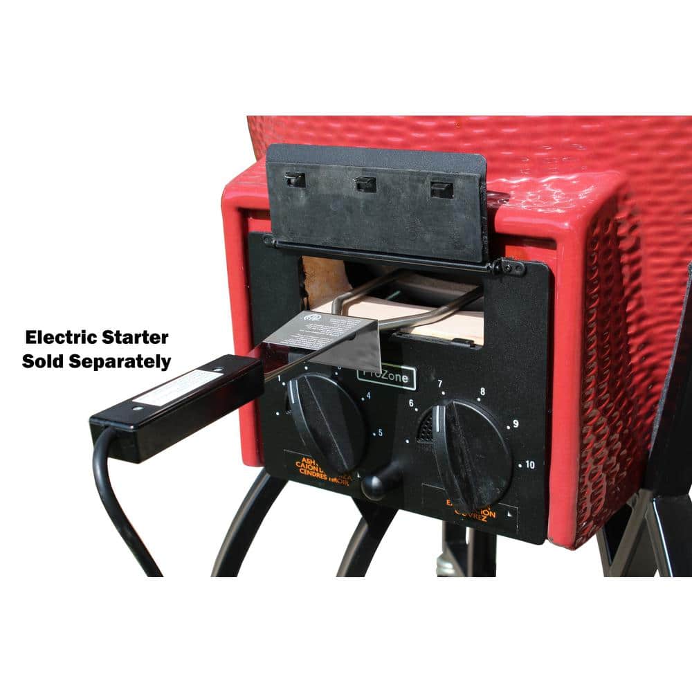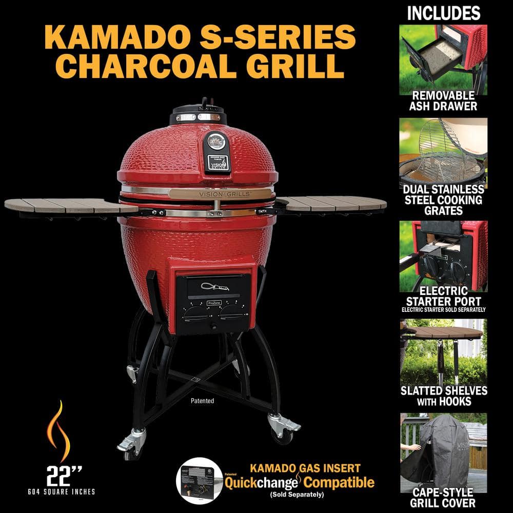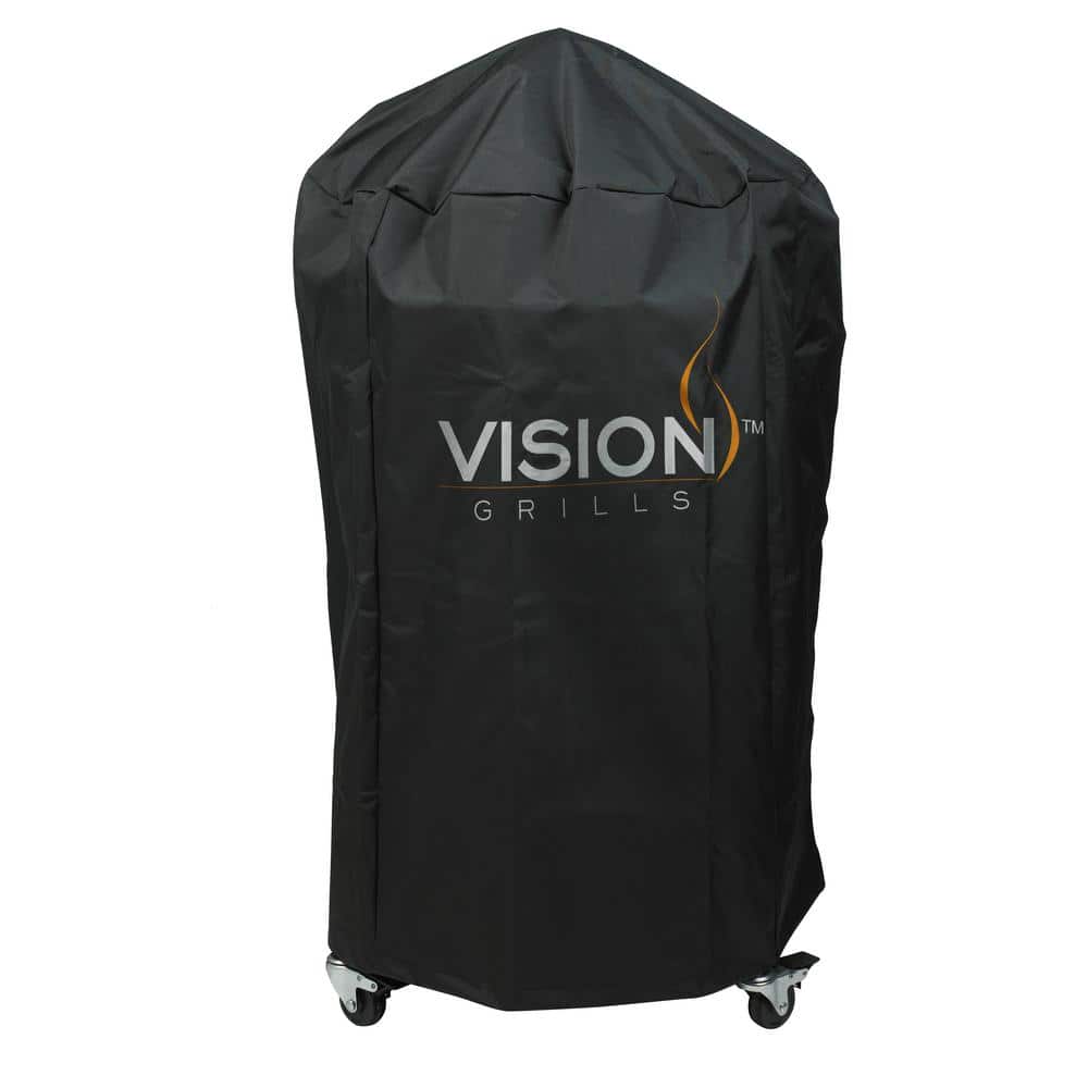 Experience the ultimate in grill versatility with the Vision Grills Kamado Pro Ceramic Charcoal Grill. It replicates wood oven cooking, allowing you to grill, sear and smoke meats and vegetables as well as bake pizzas and bread. An electric starter port lets you light the grill with ease. Dual calibrated draft vents provide perfect temperature control and a removable ash drawer makes for easy cleaning. This high-quality ceramic grill offers 604 sq. in. of cooking space and 2-tiered stainless steel flip grates. Additional features include a cast iron calibrated top vent, two solid-surface drop-down shelves and a full-length vinyl cover for durable protection.