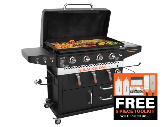 With four independently controlled cooking zones pumping out a whopping 60,000 BTUs, the Patio 36�� Cabinet Griddle W/Airfryer is sure to quickly get your griddle top to your desired temperature while perfectly frying any side imaginable. This combo gives you the ability of making burgers and fries without ever leaving your griddle. With 8 quarts of frying capacity (two drawers) and a 4 -quart warming drawer, easily make a shareable side and keep it warm until the rest of your foods ready!