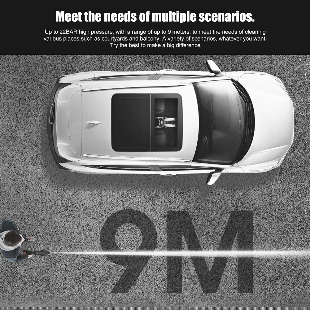 *1. Cordless Pressure Washer takes portability and convenience into consideration, there is no power cable anymore, High-Capacity Battery Operated, allowing you to clean all your outdoor spaces and gear, anytime, anywhere.
