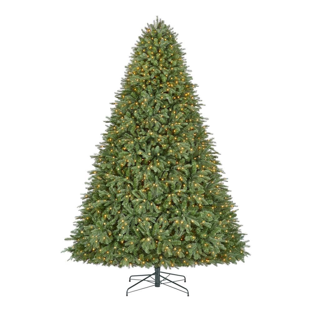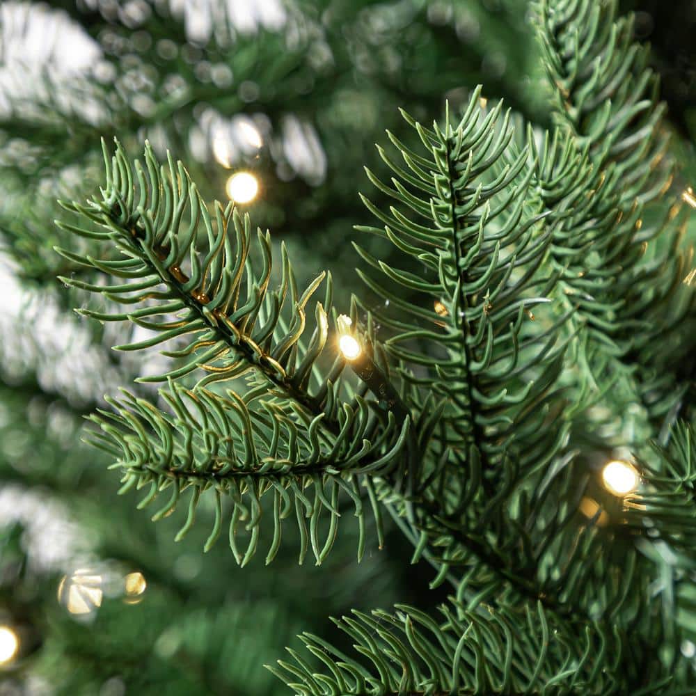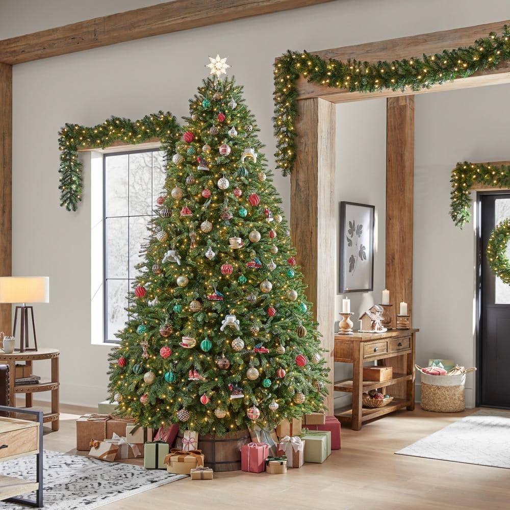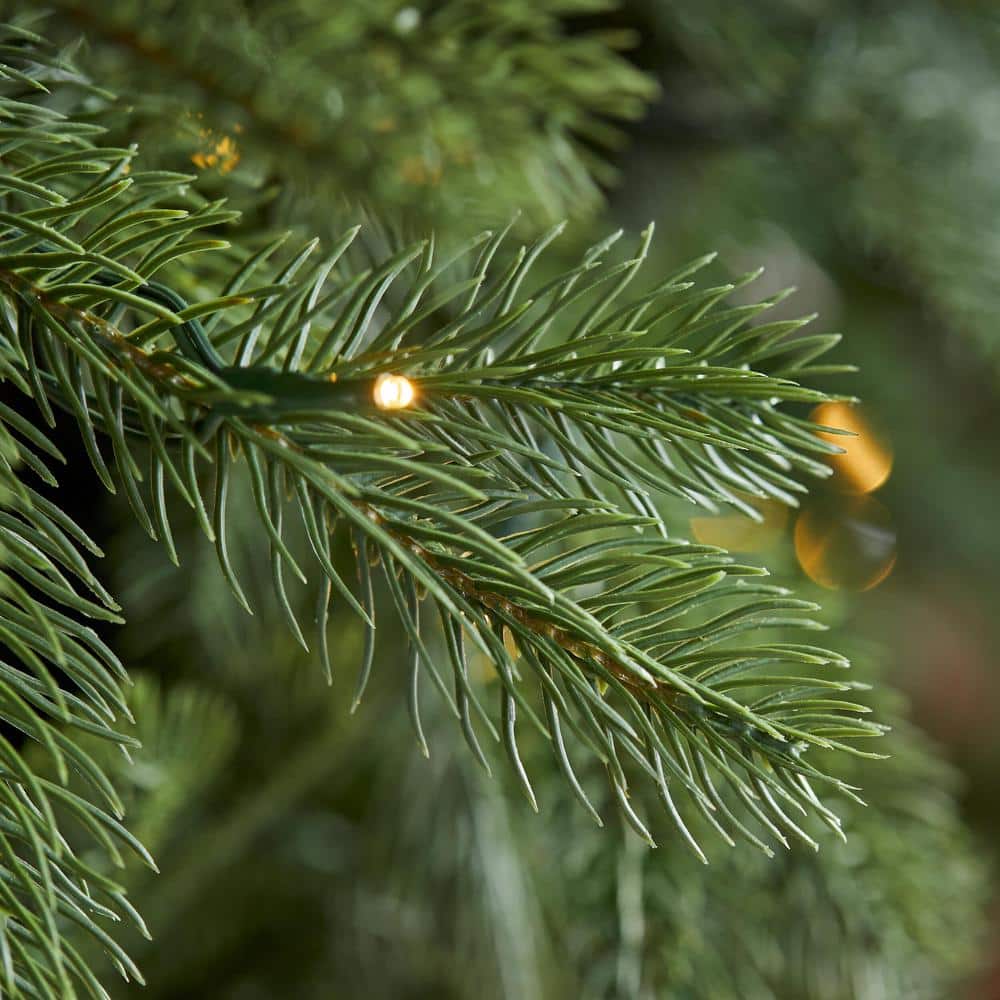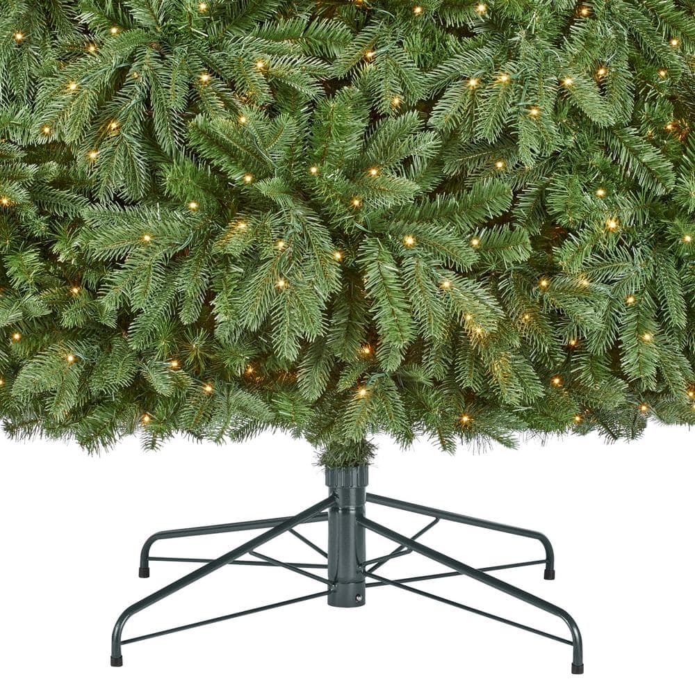 Create an enchanted holiday scene with this 9-ft. Aldon pre-Lit LED artificial tree. For a vintage style, it comes with 5,416 balsam fir branch tips, giving the tree a lush appearance. The 1,500 micro fairy LEDs bring a warm glow to your space. To help you create a wintry light display, it includes five preset light functions, foot pedal and quick-set connector.