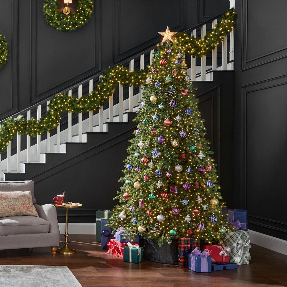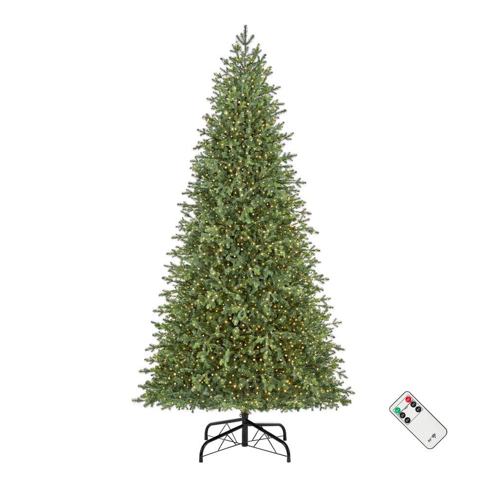 Put the finishing touch on your Christmas decorations with this beautiful 9-ft. Elegant Grand Fir Christmas Tree as the centerpiece. This artificial tree features 9,503 durable tips and 2,500 micro-dot, warm white LED lights for a beautiful glow anywhere in your home. It also includes a remote control for your convenience.