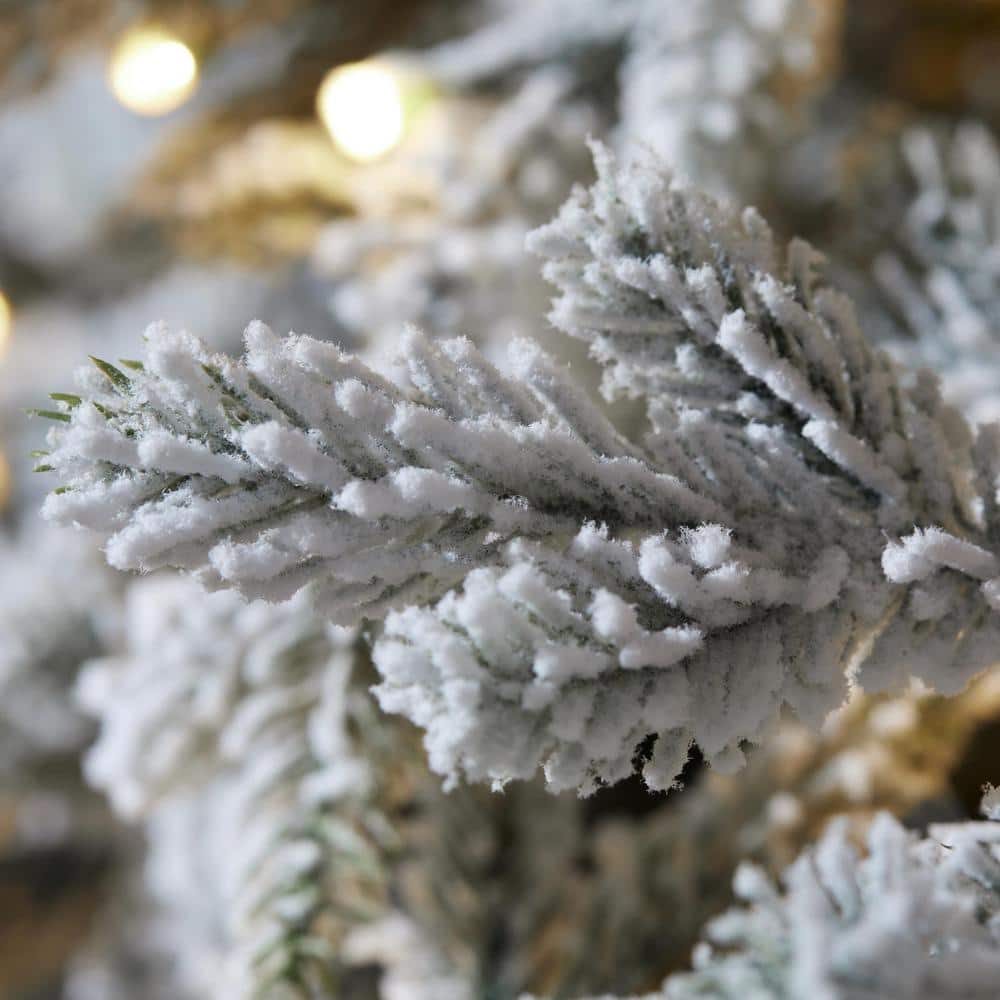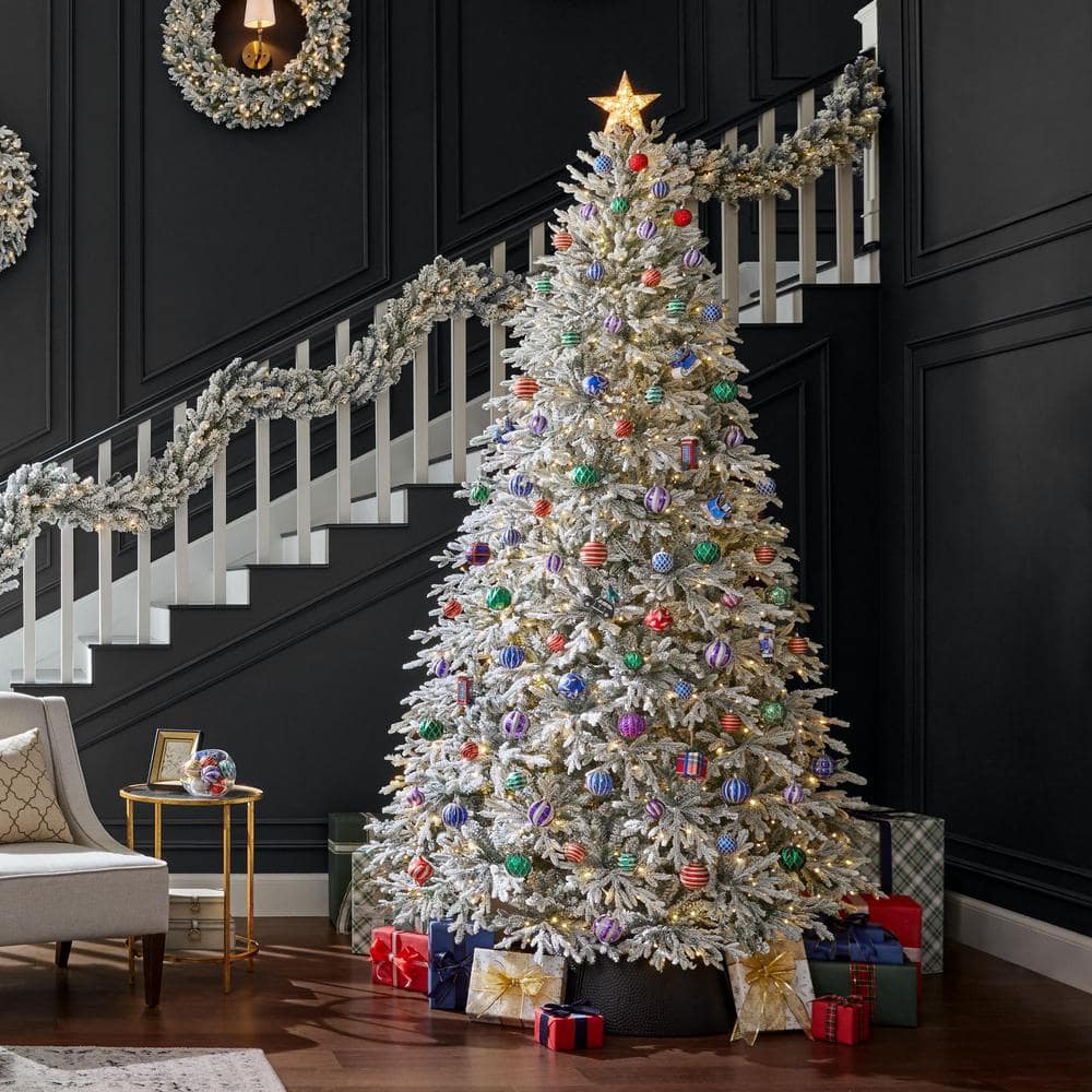 Make sure you have a holly jolly Christmas with this 9 ft. Kenwood Fraser Flocked LED Pre-Lit Artificial Christmas Tree. It works well in living rooms, dens and other spaces around your home. The 1,200 micro dot LEDs create a dazzling appeal.