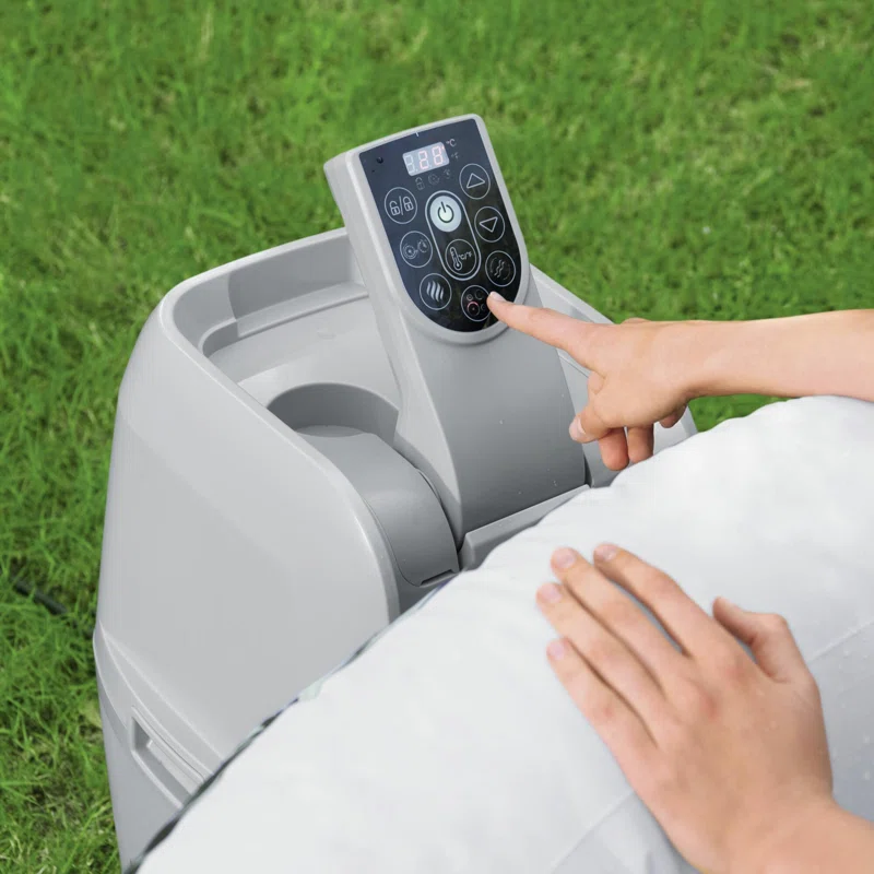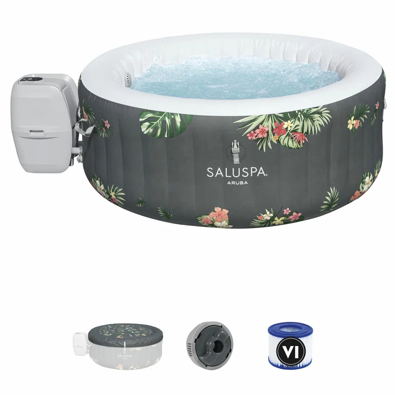After a long day, there's nothing more relaxing than sinking into warm, bubbling water right in your own backyard. The spacious, round design of the Aruba SaluSpa Hot Tub provides a soothing massage experience for up to 3 people. Simply attach the pump and watch as it inflates. Featuring an AirJet system with 110 jets, this hot tub releases bubbles from the bottom of the spa to create a warm, bubbling hot tub environment. These calming bubbles will help you relax and unwind from the comfort of your home. Built with durable DuraPlus materials to prevent damage, you can ensure that this hot tub will retain its shape after repeated inflation and deflation. Including a Freeze Shield with an automatic heating function, this hot tub's inner components will not freeze during colder temperatures. With built-in cupholders and a reinforced, insulated pool cover that locks in heat while not in use, you can be sure this spa is ready for when you are. Escape away to loosen your muscles with the Aruba SaluSpa Hot Tub from Bestway.