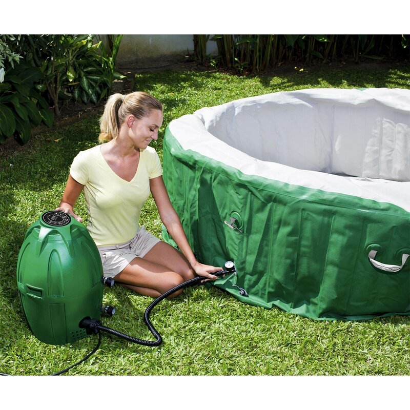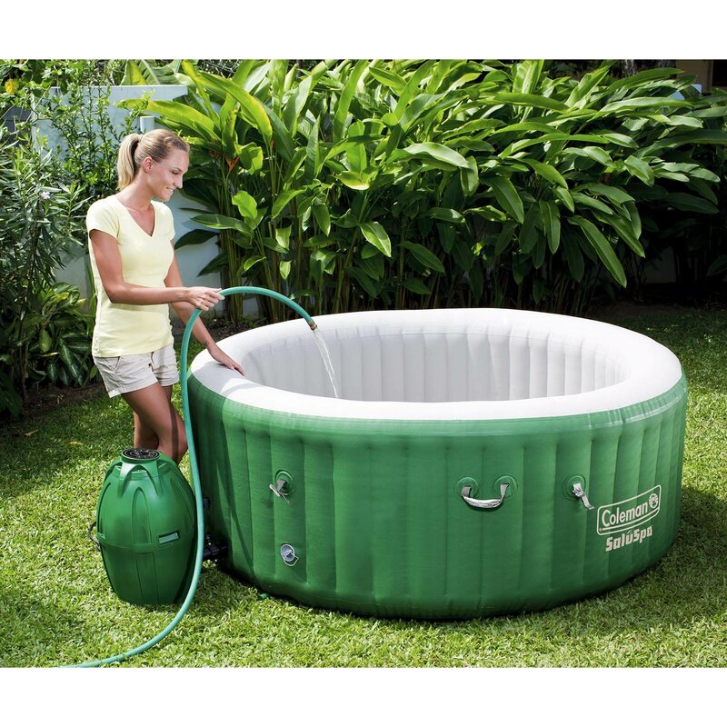 When you have a long day at the office, relax in the Coleman SaluSpa Inflatable Round Hot Tub. It's everything you love about hot tubs, but inflatable and portable. The hot tub inflates in minutes, and the rapid heating system quickly heats the water up to 104 degrees. The hot temperature is perfect for soothing sore muscles or lounging after a long day. The digital control panel lets you adjust the temperature to find your perfect fit. The inflatable walls are made of TriTech material for durability and ultimate comfort. This package also includes a chemical floater to keep your spa clean and an inflatable cover to keep it warm. You are able to share the relaxation of a hot tub with friends as this Coleman spa seats up to 6 people. Don't let anything stop you from taking a relaxing drip after work. Disclaimer: This spa cannot be used in temperatures less than 39 degrees Fahrenheit.