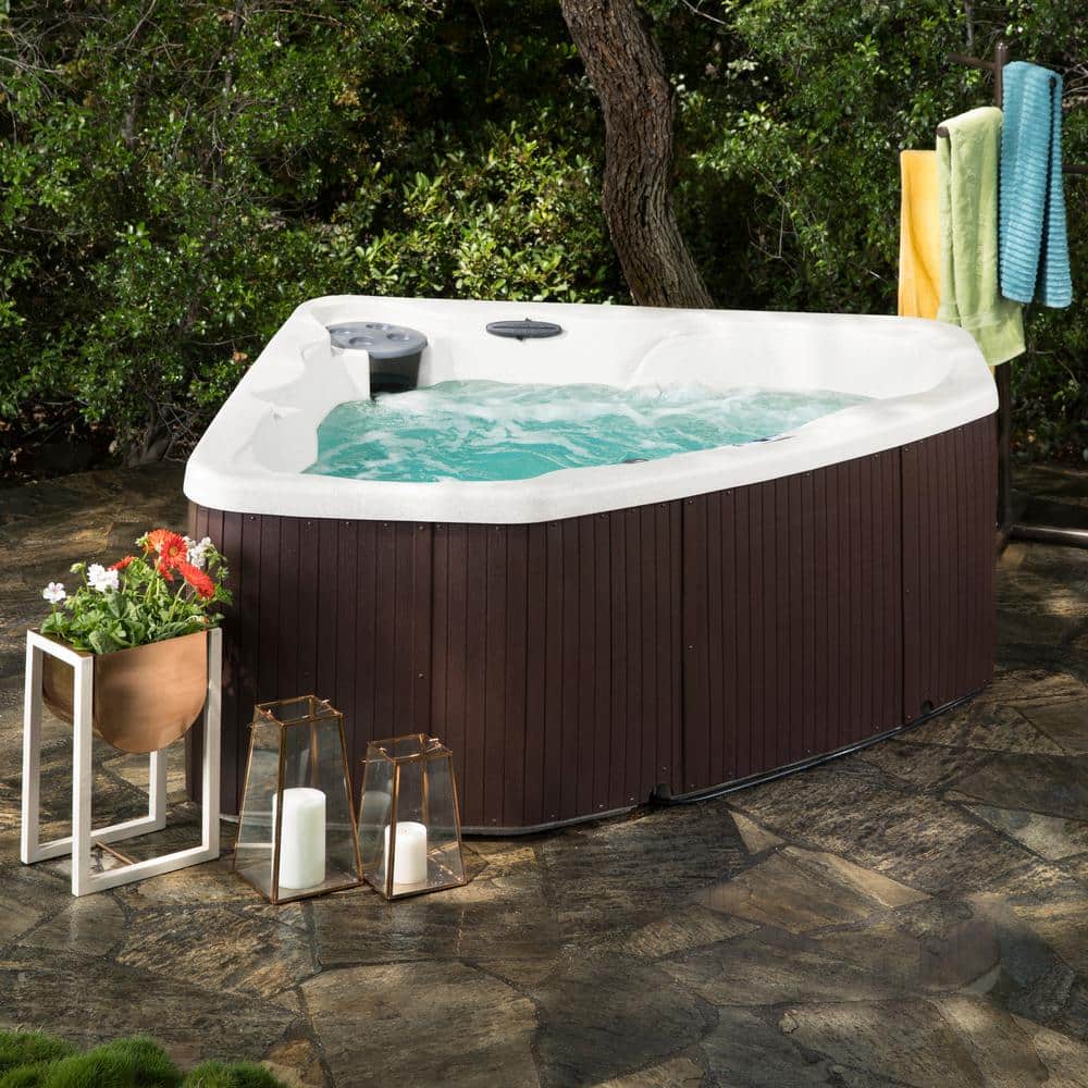 The LS300 Plus by Lifesmart Spas is a 110v plug-and-play, 17-jet spa with a waterfall feature, multi-color underwater LED light, and capacity for 2 adults. The unique triangle design fits perfectly in any space, large or small. With a powerful 1.0 HP pump, air control valve, and intuitive digital control panel, the jets can be adjusted for maximum relaxation. The included ozone water care system helps keep the water sparkling clean with fewer chemicals. Lifesmart spas are energy efficient, so there is no need to turn the temperature down while not in use. Full foam insulation and included thermal locking cover will keep the heat in and the electric bill low, so you can enjoy your new spa for years to come. Rest easy knowing that Lifesmart Spas is certified to the APSP 14 National Standard and the California Energy Commission (CEC) in accordance with California law.