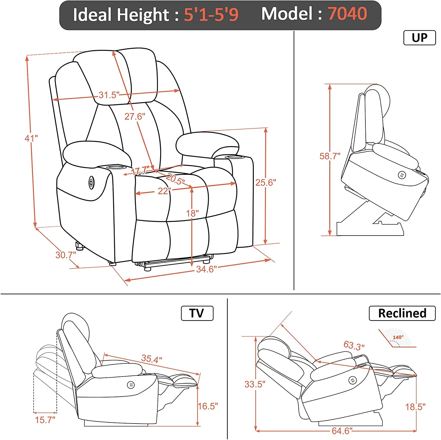 - Power Lift Assistance: Counter-balanced lift mechanism with a TUV certified actuator pushes the entire chair up to assist the user stand up easily without adding stress to the back or knees, smoothly adjust to the lift or reclining position you prefer by pressing two buttons on the remote control.