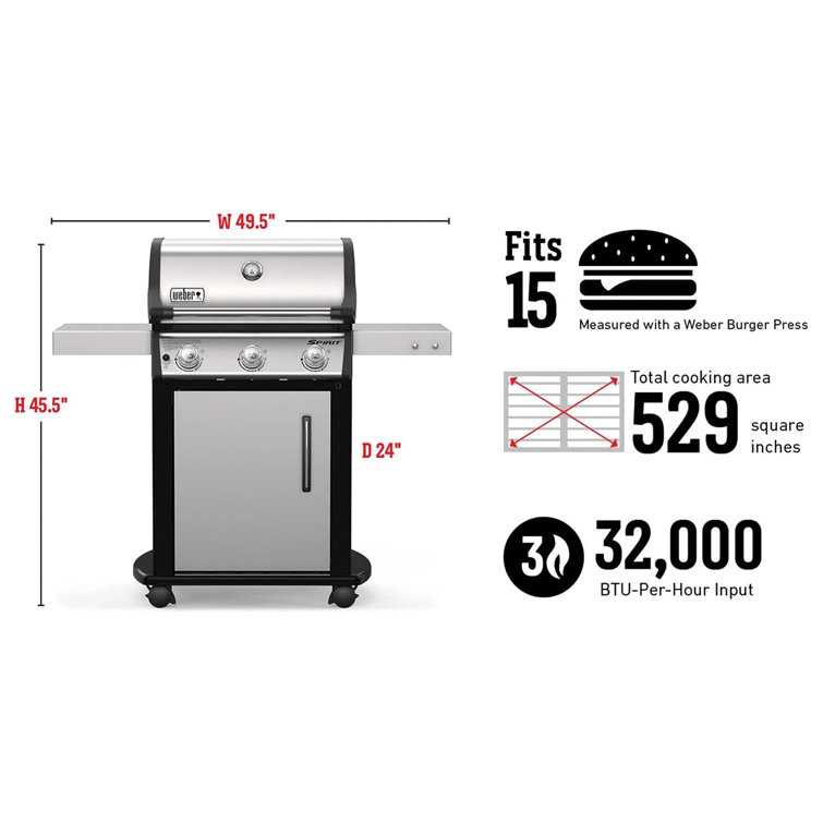 Weber 庐 Spirit S-315 LP Grill.�49.5"Wx24"Dx45.5"H