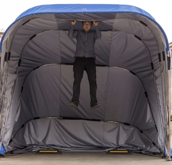 This retractable car garage acts as a movable cocoon that wraps around your vehicle when it��s stopped in a regular car space.
