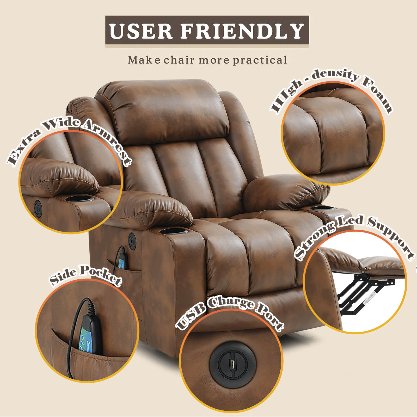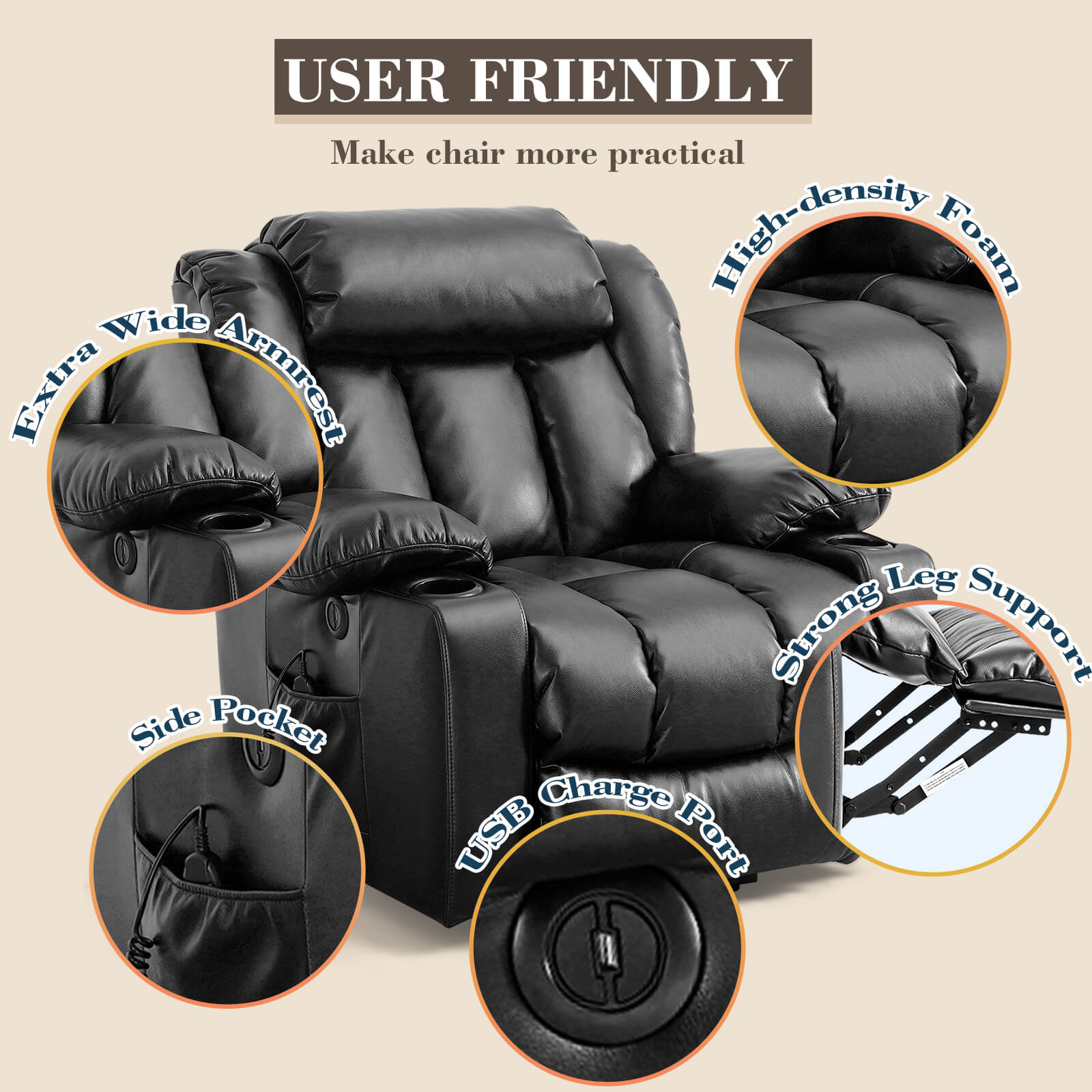 - [Sturdy and Convenient] Experience ultimate comfort with our power recliner featuring a high-density sponge filling, sturdy wood frame, and quality metal base. Stay organized with convenient cup holders and side pockets, while the built-in USB port keeps your phone charged anytime.