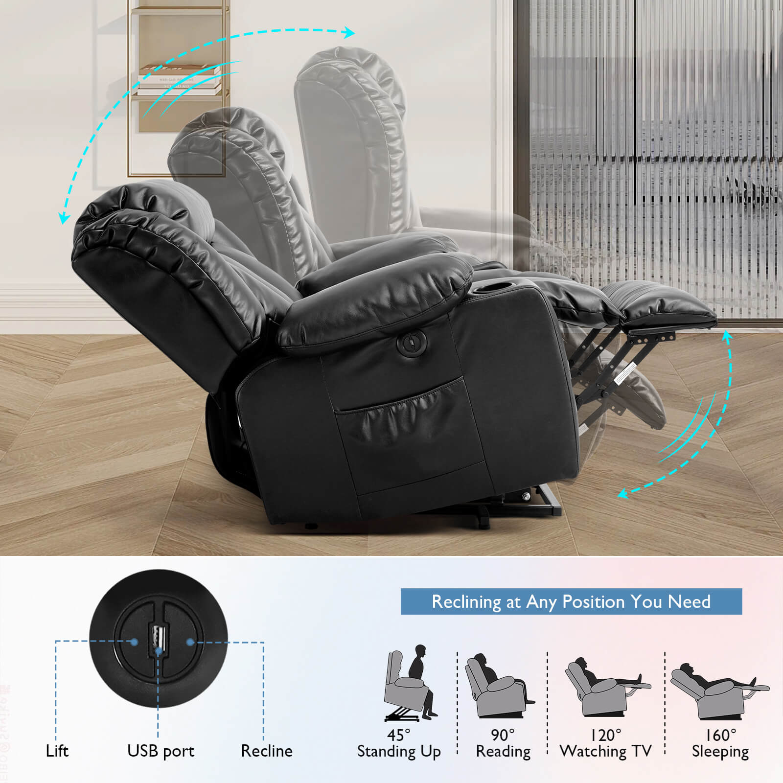 - [Breathable Leather Material] Made of breathable leather, our lift recliner features technology faux material that is not only durable and easy to clean, but also offers excellent breathability. The breathable leather ensures optimal comfort even during hot weather, providing a pleasant seating experience.