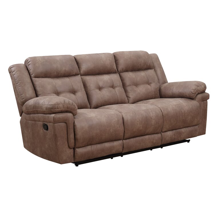 This reclining sofa elevates your living room with a classic style and a plush look and feel. It's crafted with a solid and engineered wood frame wrapped in faux leather with an authentic look that's animal-friendly. The cushions are filled with foam and supported by pocket springs to help resist sagging over time. Plus, the seats recline for maximum relaxation. We love how the pillow top arms and tufted back give this sofa a traditional character. Subtle tufting on the back cushions adds a refined finish.
