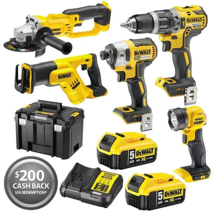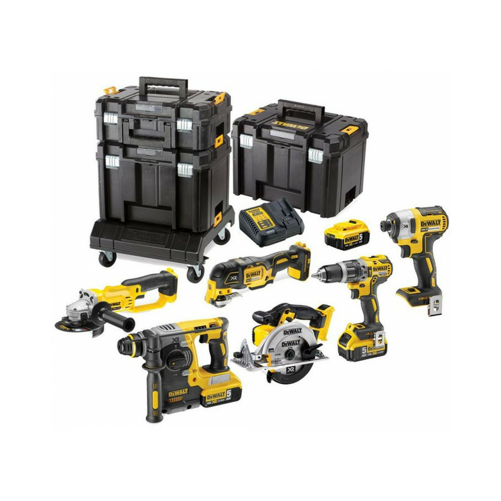 Should the most important DeWALT power tools be easily transportable?�Super set of 6 power tools (impact drill-screwdriver, impact driver, vibration-function multi-machine, angle grinder, circular saw, drill hammer), 3 batteries, 1 charger, 3 TSTAK cases and 1 TSTAK transport trolley!