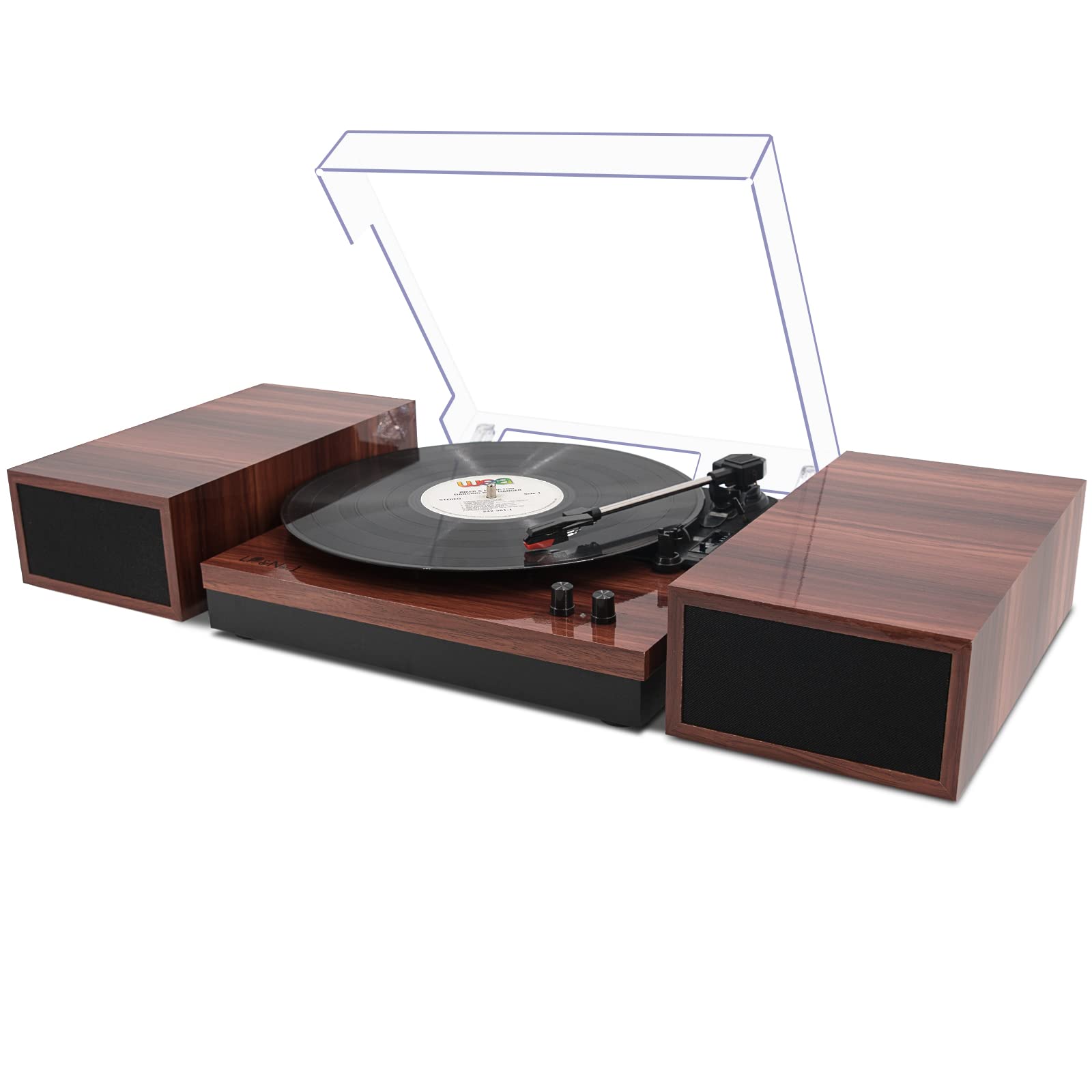 Great turntable with very solid build quality. Enjoy your favorite vinyl albums with this vintage-looking turntable. Dual powerful speakers separated from the turntable�give you stereo imaging sound.